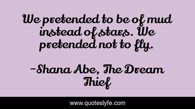 This page presents the quote "We pretended to be of mud instead of stars. We pretended not to fly.". Author of this quote is Shana Abe, The Dream Thief. This quote is about beautiful, fantasy,.