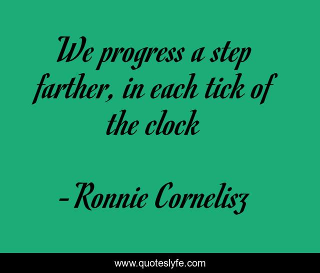 This page presents the quote "We progress a step farther, in each tick of the clock". Author of this quote is Ronnie Cornelisz. This quote is about progress, step, clock,.