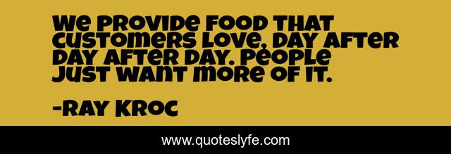 This page presents the quote "We provide food that customers love, day after day after day. People just want more of it.". Author of this quote is Ray Kroc. This quote is about love, day, affection, people,.