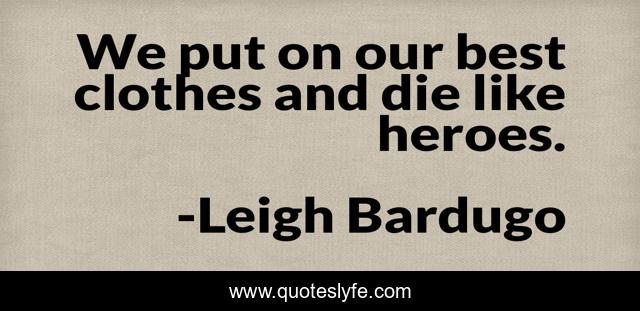 This page presents the quote "We put on our best clothes and die like heroes.". Author of this quote is Leigh Bardugo. This quote is about aloof, nikolai, honor, lantsov,.