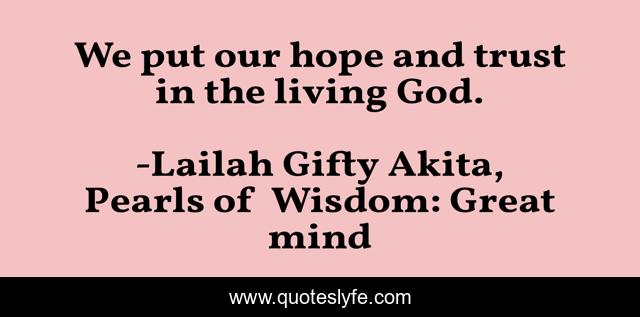 "Lailah Gifty Akita, Pearls of Wisdom: Great mind Quotes." Quoteslyfe.com, 2025. Sun. 07 Dec. 2025. <https://www.quoteslyfe.com/quote/We-put-our-hope-and-trust-in-85399>.