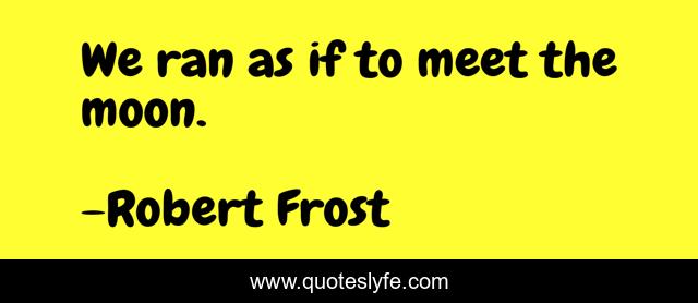 This page presents the quote "We ran as if to meet the moon.". Author of this quote is Robert Frost. This quote is about robert-frost, poetry, moon,.