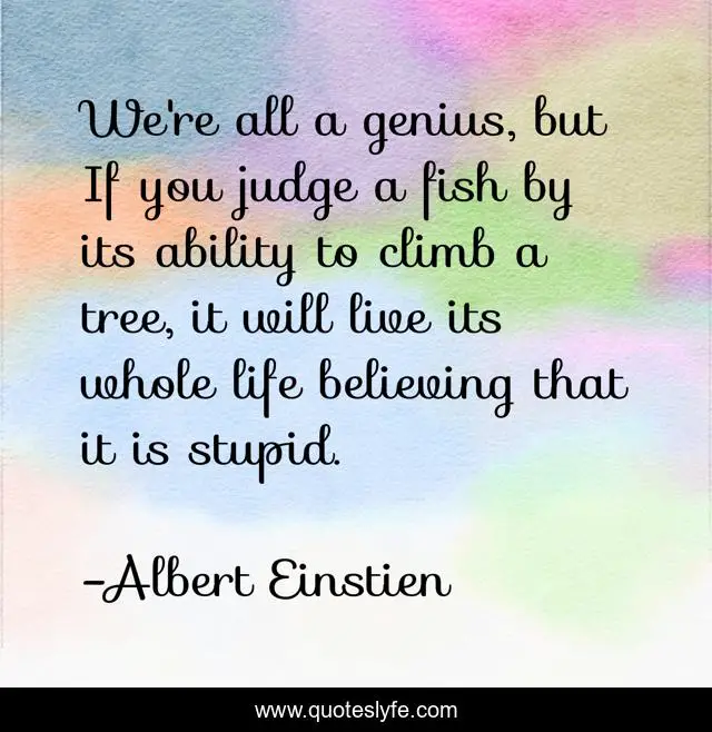 We're all a genius, but If you judge a fish by its ability to climb a tree, it will live its whole life believing that it is stupid.