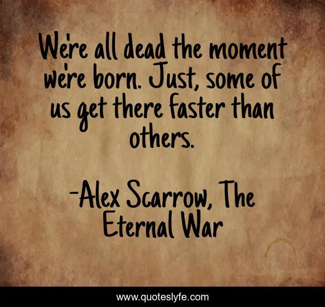 "Alex Scarrow, The Eternal War Quotes." Quoteslyfe.com, 2025. Mon. 08 Dec. 2025. <https://www.quoteslyfe.com/quote/We-re-all-dead-the-moment-we-21183>.