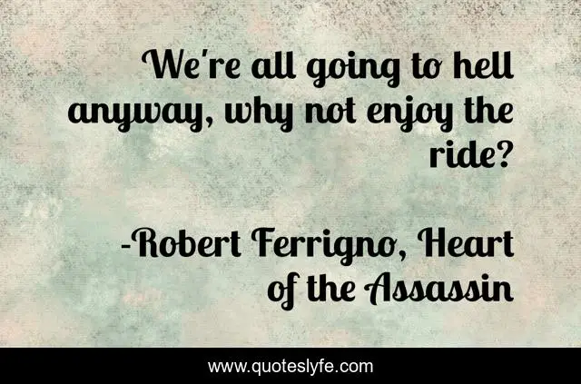 This page presents the quote "We're all going to hell anyway, why not enjoy the ride?". Author of this quote is Robert Ferrigno, Heart of the Assassin. This quote is about enjoy, hell,.