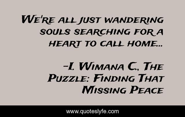 "I. Wimana C., The Puzzle: Finding That Missing Peace Quotes." Quoteslyfe.com, 2025. Fri. 05 Dec. 2025. <https://www.quoteslyfe.com/quote/We-re-all-just-wandering-souls-searching-23596>.