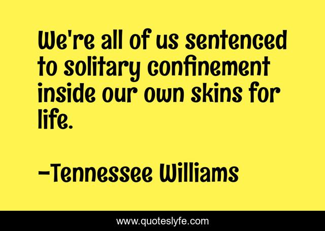This page presents the quote "We're all of us sentenced to solitary confinement inside our own skins for life.". Author of this quote is Tennessee Williams. .