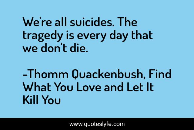 "Thomm Quackenbush, Find What You Love and Let It Kill You Quotes." Quoteslyfe.com, 2025. Fri. 05 Dec. 2025. <https://www.quoteslyfe.com/quote/We-re-all-suicides-The-tragedy-is-144722>.