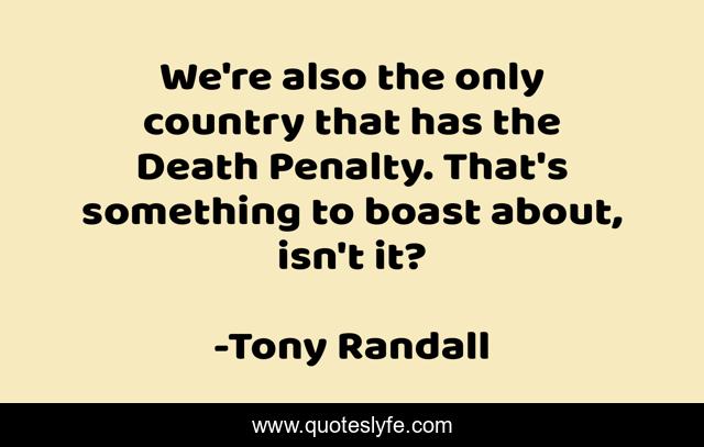 This page presents the quote "We're also the only country that has the Death Penalty. That's something to boast about, isn't it?". Author of this quote is Tony Randall. This quote is about country, death penalty,.