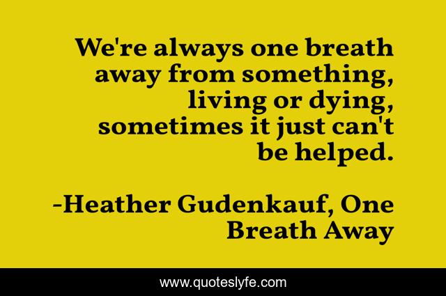 This page presents the quote "We're always one breath away from something, living or dying, sometimes it just can't be helped.". Author of this quote is Heather Gudenkauf, One Breath Away. This quote is about breathing, life, death, life-and-death,.