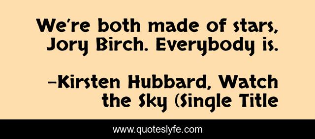 "Kirsten Hubbard, Watch the Sky (Single Title Quotes." Quoteslyfe.com, 2025. Sun. 07 Dec. 2025. <https://www.quoteslyfe.com/quote/We-re-both-made-of-stars-Jory-195345>.
