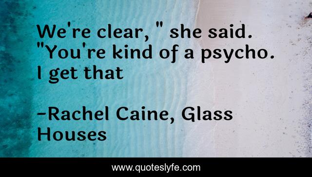 This page presents the quote "We're clear, " she said. "You're kind of a psycho. I get that". Author of this quote is Rachel Caine, Glass Houses. This quote is about morganville-vampires, funny, crazy, comedy,.