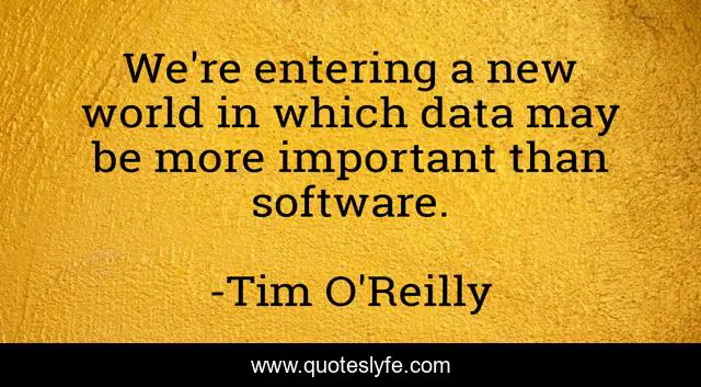 This page presents the quote "We're entering a new world in which data may be more important than software.". Author of this quote is Tim O'Reilly. This quote is about world, data, software,.