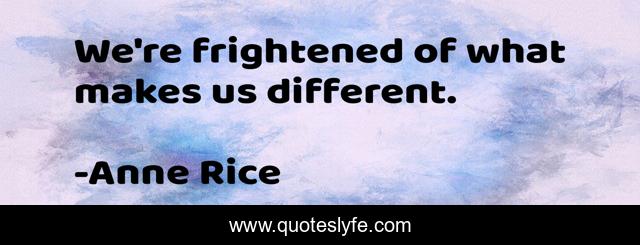 This page presents the quote "We're frightened of what makes us different.". Author of this quote is Anne Rice. .