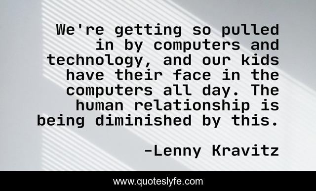This page presents the quote "We're getting so pulled in by computers and technology, and our kids have their face in the computers all day. The human relationship is being diminished by this.". Author of this quote is Lenny Kravitz. This quote is about technology, relationship,.