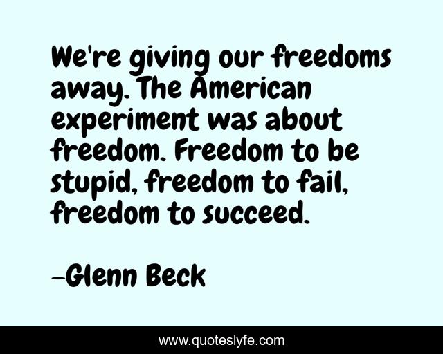 This page presents the quote "We're giving our freedoms away. The American experiment was about freedom. Freedom to be stupid, freedom to fail, freedom to succeed.". Author of this quote is Glenn Beck. This quote is about giving, american, stupid,.