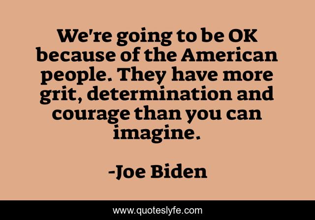 This page presents the quote "We're going to be OK because of the American people. They have more grit, determination and courage than you can imagine.". Author of this quote is Joe Biden. This quote is about american, determination,.