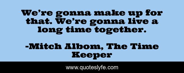 This page presents the quote "We’re gonna make up for that. We’re gonna live a long time together.". Author of this quote is Mitch Albom, The Time Keeper. .