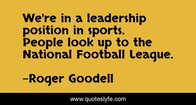 This page presents the quote "We're in a leadership position in sports. People look up to the National Football League.". Author of this quote is Roger Goodell. This quote is about sports, football, people,.