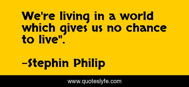 This page presents the quote "We're living in a world which gives us no chance to live".". Author of this quote is Stephin Philip. This quote is about life-and-living, life-experience,.