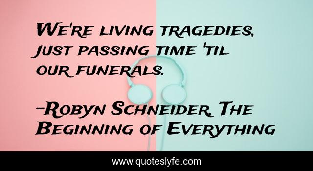 "Robyn Schneider, The Beginning of Everything Quotes." Quoteslyfe.com, 2025. Fri. 05 Dec. 2025. <https://www.quoteslyfe.com/quote/We-re-living-tragedies-just-passing-time-90566>.