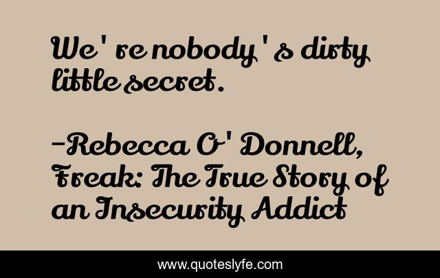 "Rebecca O'Donnell, Freak: The True Story of an Insecurity Addict Quotes." Quoteslyfe.com, 2025. Sat. 06 Dec. 2025. <https://www.quoteslyfe.com/quote/We-re-nobody-s-dirty-little-secret-246699>.