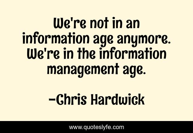 This page presents the quote "We're not in an information age anymore. We're in the information management age.". Author of this quote is Chris Hardwick. This quote is about information, management,.