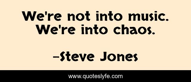 This page presents the quote "We're not into music. We're into chaos.". Author of this quote is Steve Jones. .