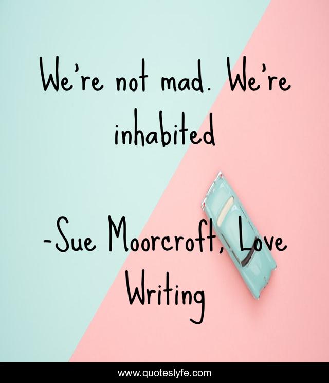 "Sue Moorcroft, Love Writing Quotes." Quoteslyfe.com, 2025. Fri. 05 Dec. 2025. <https://www.quoteslyfe.com/quote/We-re-not-mad-We-re-inhabited-18971>.