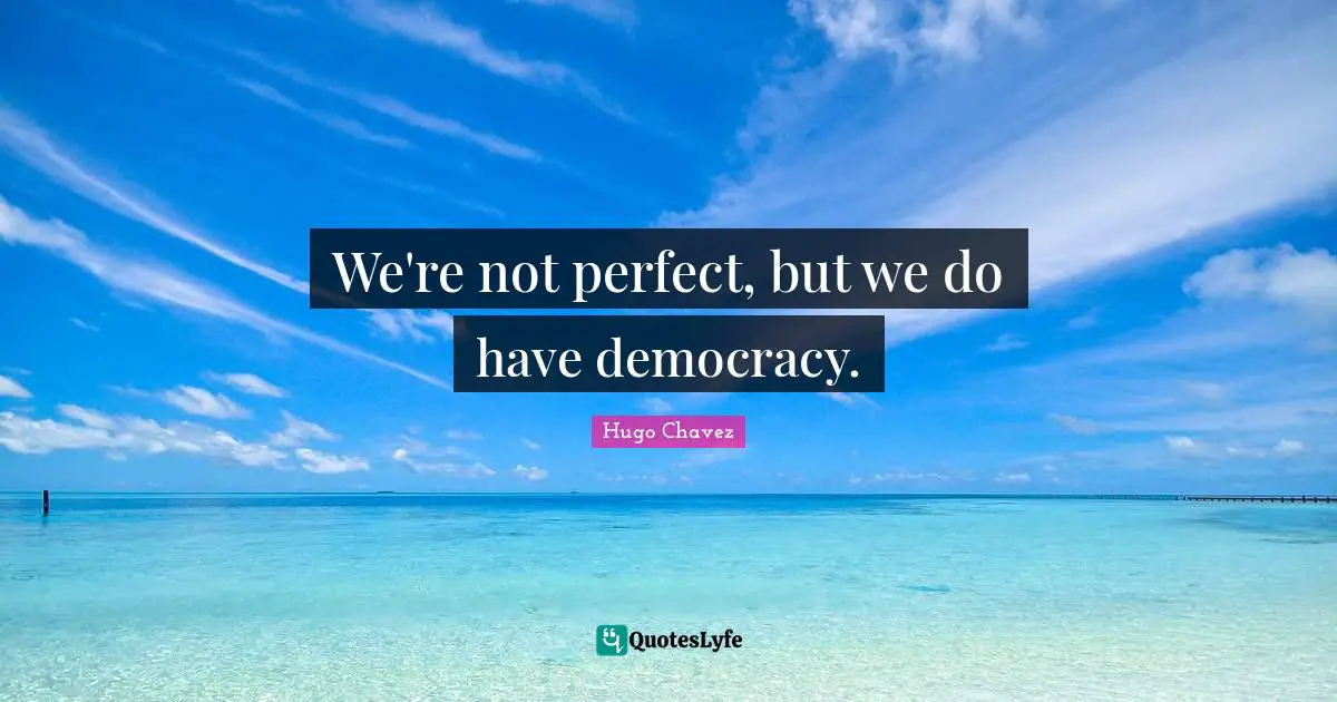 This page presents the quote "We're not perfect, but we do have democracy.". Author of this quote is Hugo Chavez. This quote is about democracy, perfect, not perfect,.