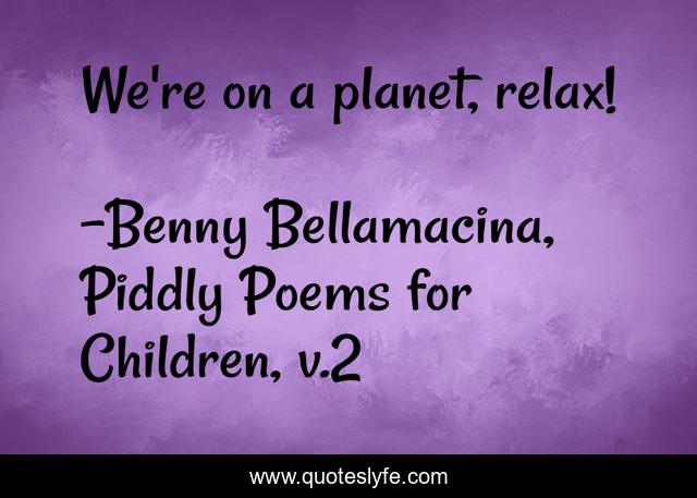 "Benny Bellamacina, Piddly Poems for Children, v.2 Quotes." Quoteslyfe.com, 2025. Fri. 05 Dec. 2025. <https://www.quoteslyfe.com/quote/We-re-on-a-planet-relax-8033>.