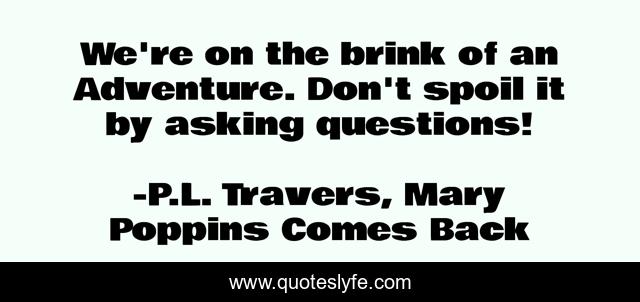 This page presents the quote "We're on the brink of an Adventure. Don't spoil it by asking questions!". Author of this quote is P.L. Travers, Mary Poppins Comes Back. This quote is about adventure, questions,.
