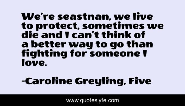 This page presents the quote "We’re seastnan, we live to protect, sometimes we die and I can’t think of a better way to go than fighting for someone I love.". Author of this quote is Caroline Greyling, Five. This quote is about young-adult-paranormal, romance-book, young-adult-romance, young-adult,.