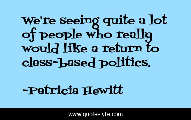 This page presents the quote "We're seeing quite a lot of people who really would like a return to class-based politics.". Author of this quote is Patricia Hewitt. This quote is about seeing, return, people,.