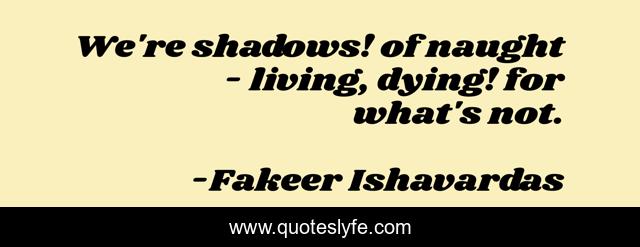 "Fakeer Ishavardas Quotes." Quoteslyfe.com, 2025. Mon. 08 Dec. 2025. <https://www.quoteslyfe.com/quote/We-re-shadows-of-naught-living-dying-199260>.