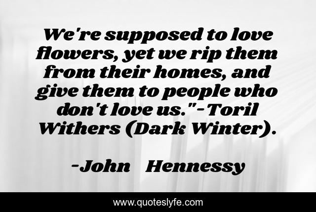 This page presents the quote "We're supposed to love flowers, yet we rip them from their homes, and give them to people who don't love us."-Toril Withers (Dark Winter).". Author of this quote is John Hennessy. This quote is about dark-winter, horror, pnr, paranormal,.
