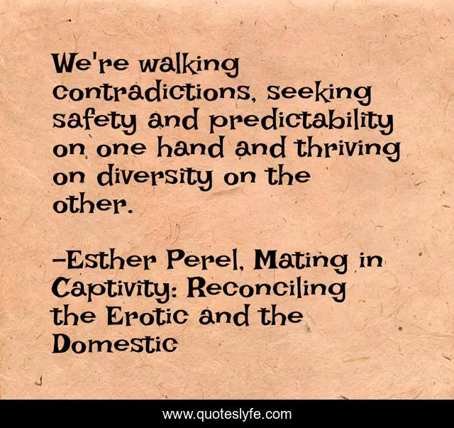 "Esther Perel, Mating in Captivity: Reconciling the Erotic and the Domestic Quotes." Quoteslyfe.com, 2025. Sat. 06 Dec. 2025. <https://www.quoteslyfe.com/quote/We-re-walking-contradictions-seeking-safety-and-175326>.