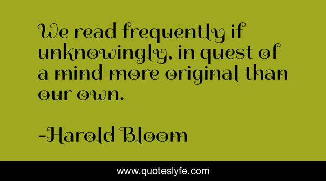 This page presents the quote "We read frequently if unknowingly, in quest of a mind more original than our own.". Author of this quote is Harold Bloom. This quote is about books, books-reading, reading,.