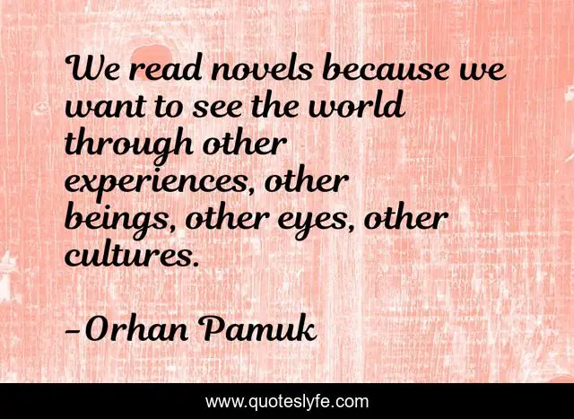 This page presents the quote "We read novels because we want to see the world through other experiences, other beings, other eyes, other cultures.". Author of this quote is Orhan Pamuk. This quote is about reading, novels,.