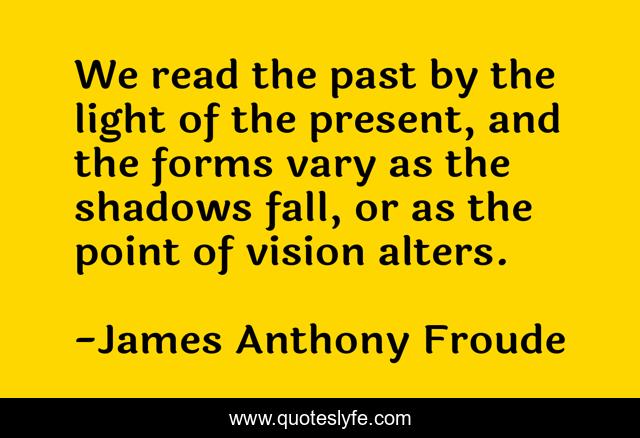 This page presents the quote "We read the past by the light of the present, and the forms vary as the shadows fall, or as the point of vision alters.". Author of this quote is James Anthony Froude. This quote is about perception, history,.