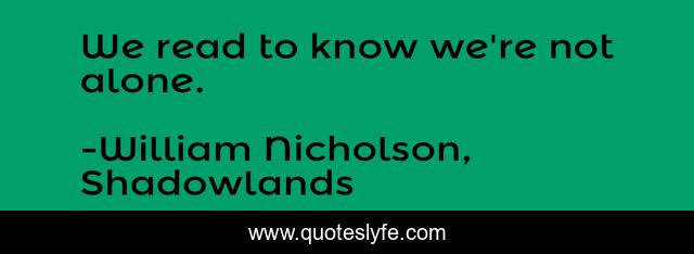 This page presents the quote "We read to know we're not alone.". Author of this quote is William Nicholson, Shadowlands. This quote is about reading, misattributed-to-c-s-lewis,.