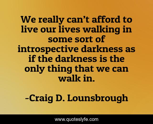 This page presents the quote "We really can’t afford to live our lives walking in some sort of introspective darkness as if the darkness is the only thing that we can walk in.". Author of this quote is Craig D. Lounsbrough. .