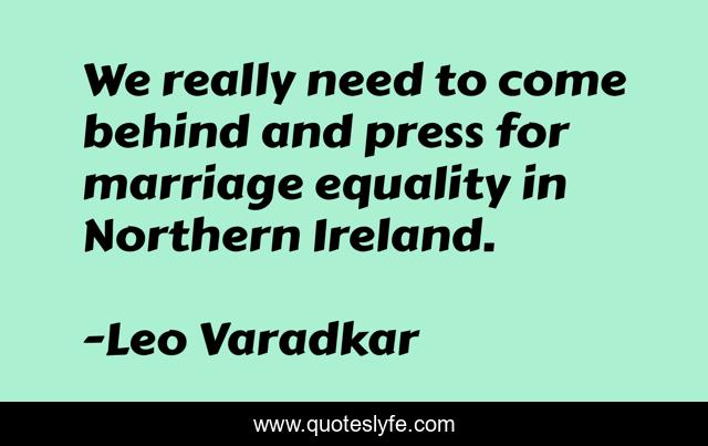 This page presents the quote "We really need to come behind and press for marriage equality in Northern Ireland.". Author of this quote is Leo Varadkar. This quote is about need, behind, marriage,.