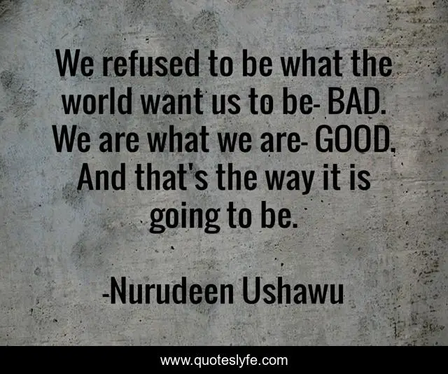 "Nurudeen Ushawu Quotes." Quoteslyfe.com, 2025. Sun. 07 Dec. 2025. <https://www.quoteslyfe.com/quote/We-refused-to-be-what-the-world-115632>.