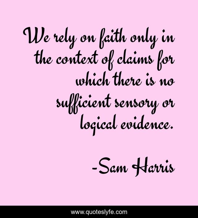 This page presents the quote "We rely on faith only in the context of claims for which there is no sufficient sensory or logical evidence.". Author of this quote is Sam Harris. This quote is about belief, religion, humanism, atheism, spirituality, agnosticism, ethics,.