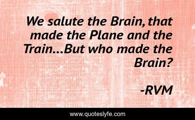 This page presents the quote "We salute the Brain, that made the Plane and the Train…But who made the Brain?". Author of this quote is RVM. This quote is about motivation, inspiration,.