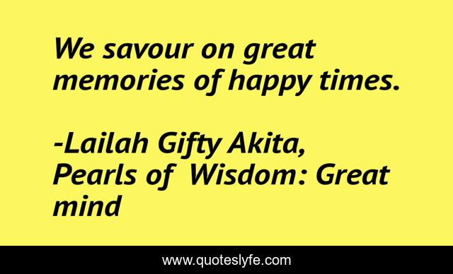 "Lailah Gifty Akita, Pearls of Wisdom: Great mind Quotes." Quoteslyfe.com, 2025. Tue. 09 Dec. 2025. <https://www.quoteslyfe.com/quote/We-savour-on-great-memories-of-happy-98753>.