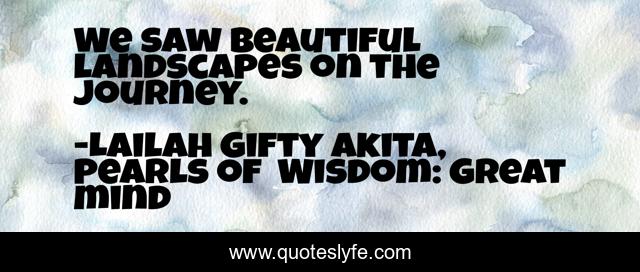 "Lailah Gifty Akita, Pearls of Wisdom: Great mind Quotes." Quoteslyfe.com, 2025. Sat. 06 Dec. 2025. <https://www.quoteslyfe.com/quote/We-saw-beautiful-landscapes-on-the-journey-137204>.