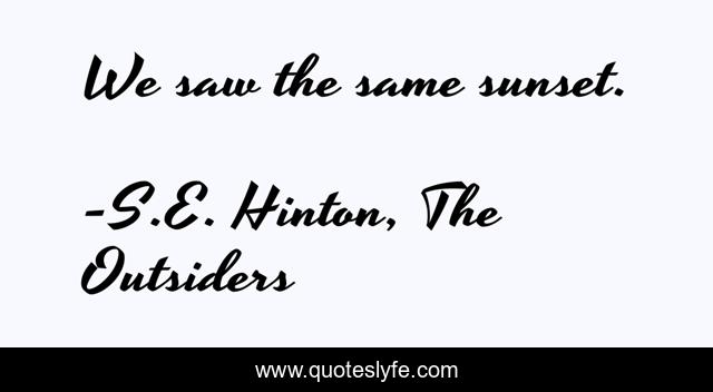 "S.E. Hinton, The Outsiders Quotes." Quoteslyfe.com, 2025. Fri. 05 Dec. 2025. <https://www.quoteslyfe.com/quote/We-saw-the-same-sunset-169780>.
