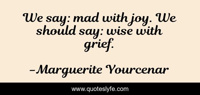 This page presents the quote "We say: mad with joy. We should say: wise with grief.". Author of this quote is Marguerite Yourcenar. .
